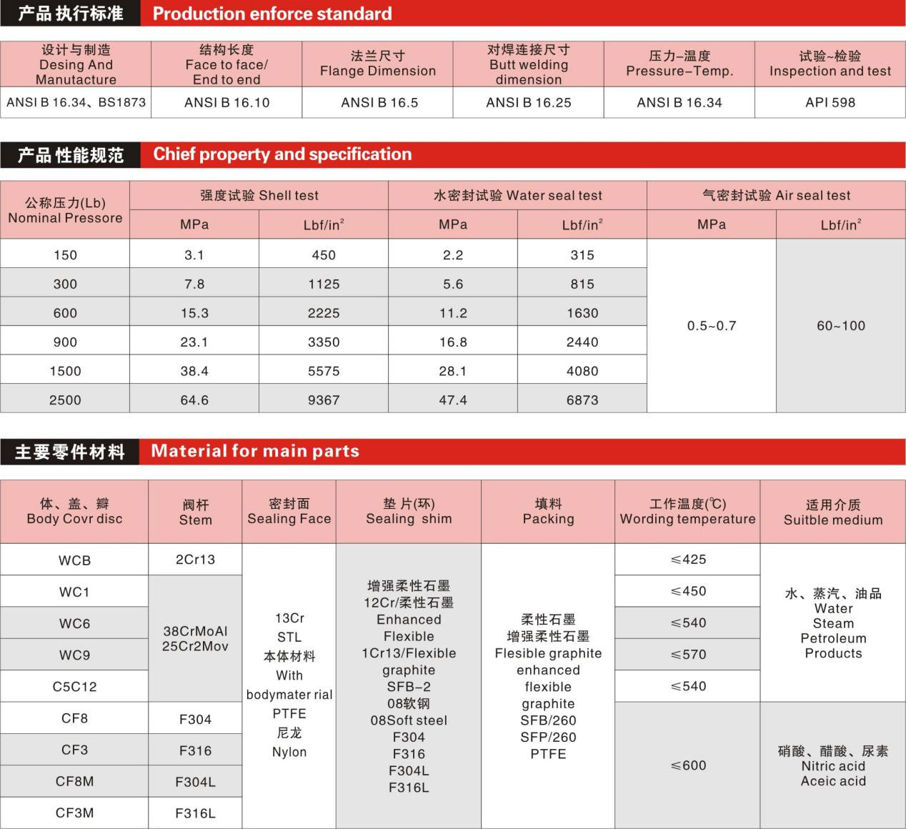 5、閥體材料品種齊全,填料、墊片可根據(jù)實(shí)際工況或用戶要求合理選配,能適用于各種壓力、溫度及介質(zhì)工況。